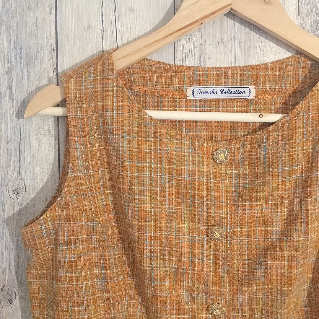 ノースリーブトップス ツイードトップス 春夏トップス 古着 シンプルトップス
