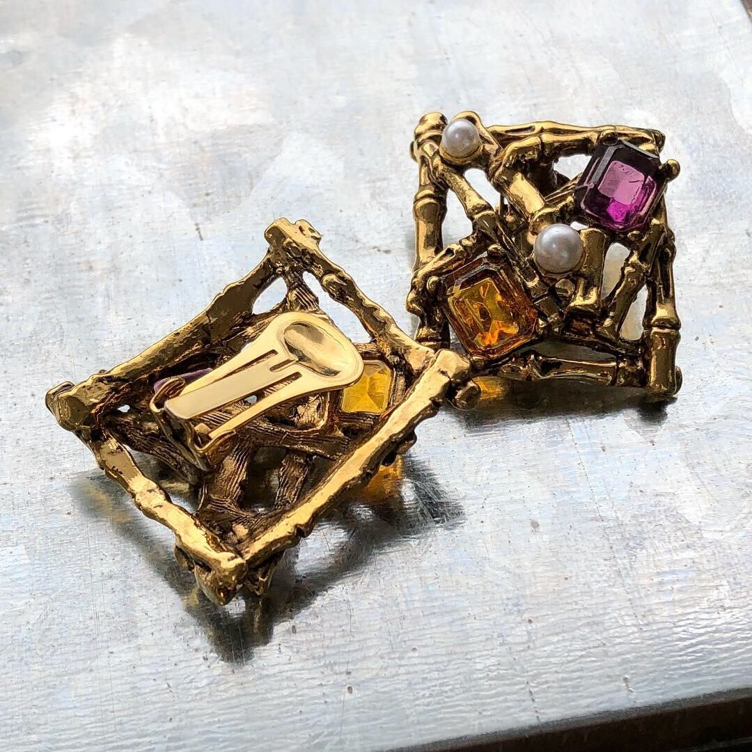 ビンテージ イヤリング 大ぶり 大ぶりイヤリング レトロ レトロイヤリング ビンテージイヤリング ヴィンテージ ヴィンテージイヤリング used 古着 ビジュー ビジューイヤリング パール パールイヤリング パーティーアクセサリー パーティーイヤリング 秋イヤリング 冬イヤリング